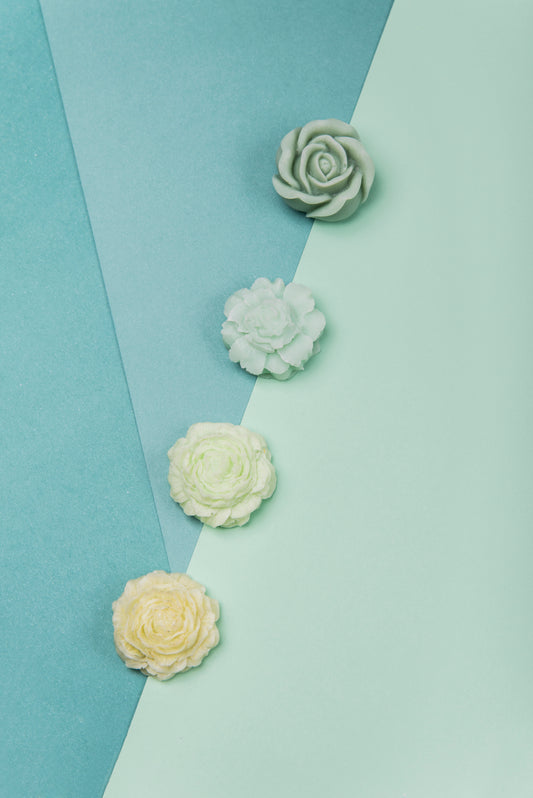 Cialde in cera di soia a forma di fiorellini,ispirate alle 4 stagioni....