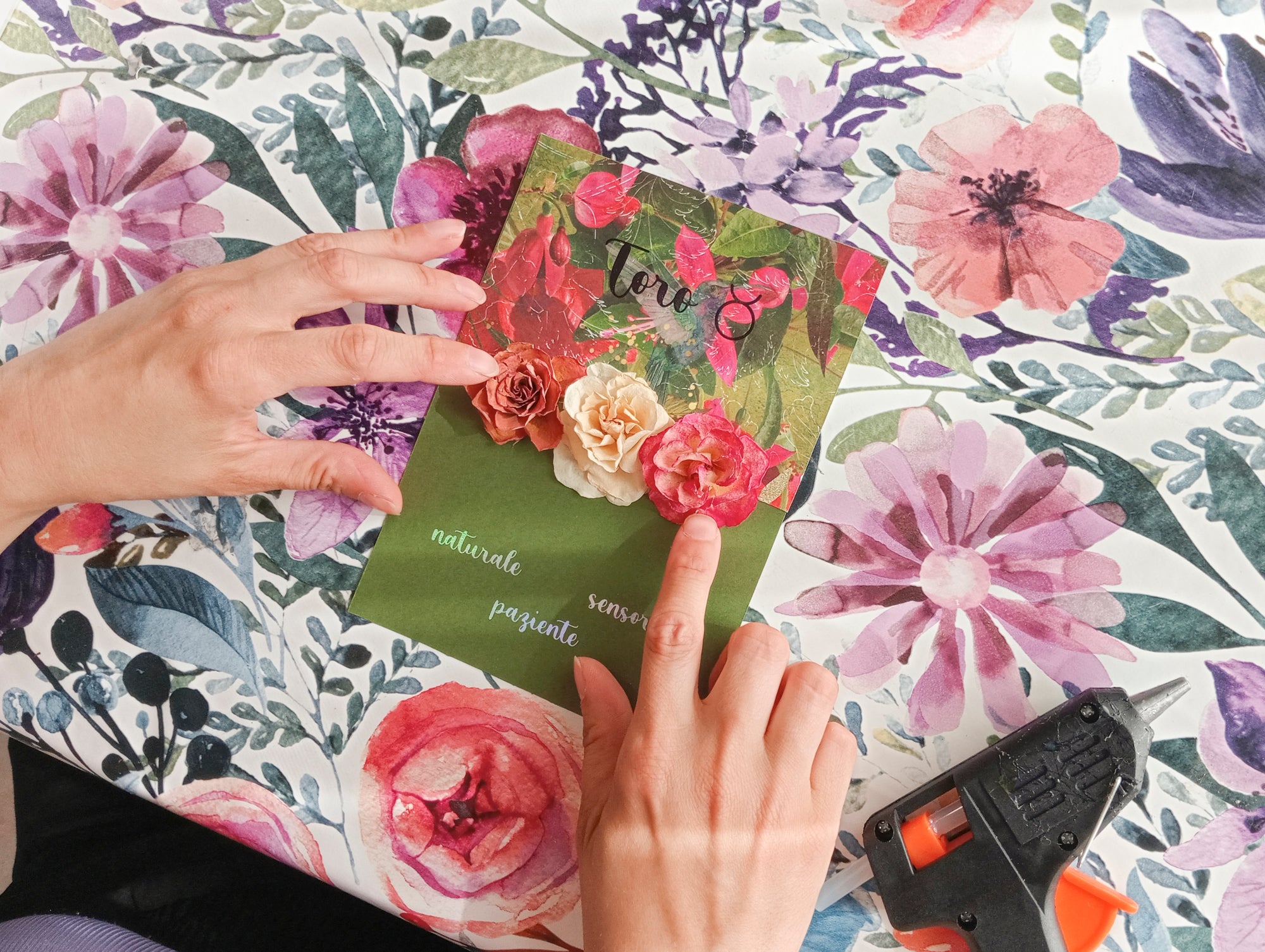 Ogni quadro ha come stile, i colori che sono presenti nella foto, ma essendo artigianale, possono variare leggermente i fiori e la stampa floreale.