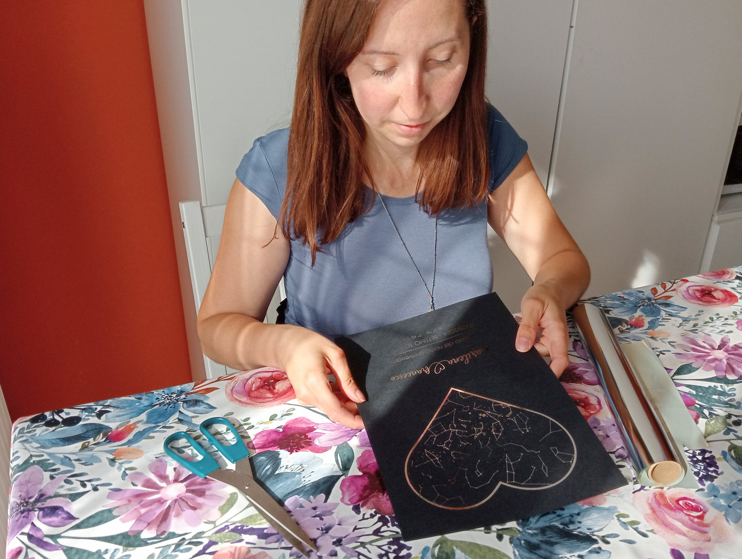 È realizzato a mano da un’artigiana vera, Valentina.