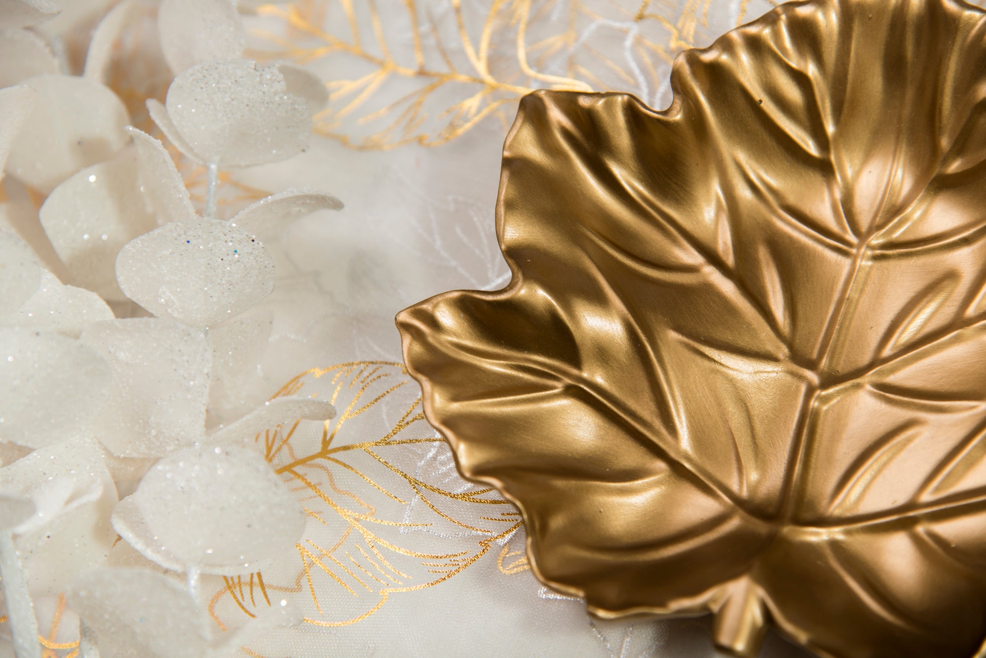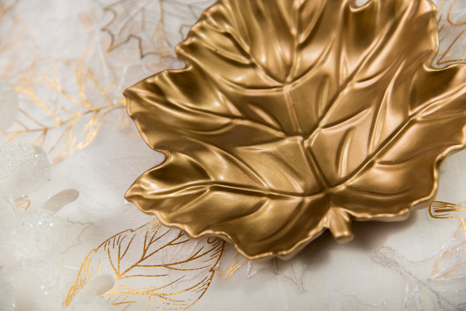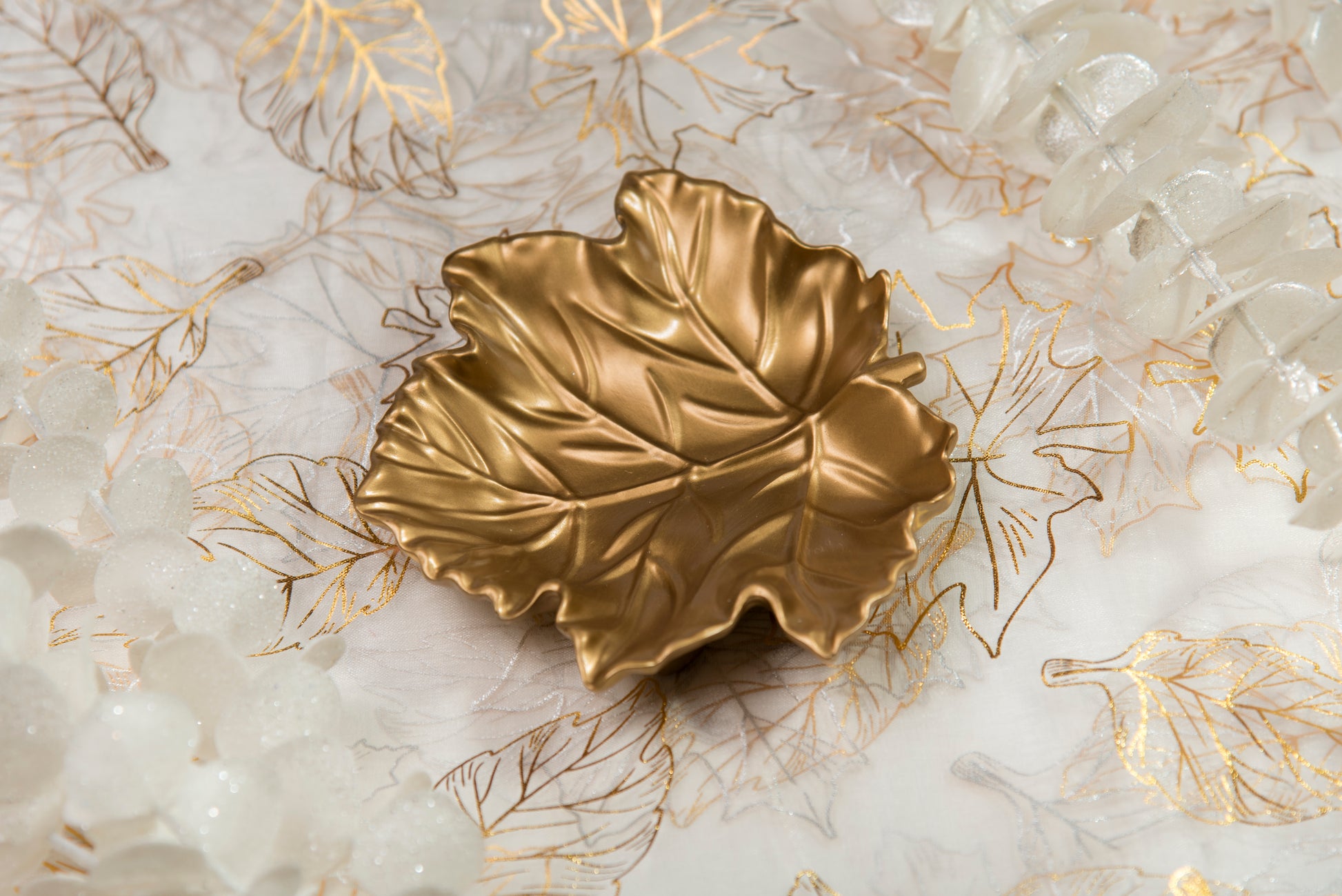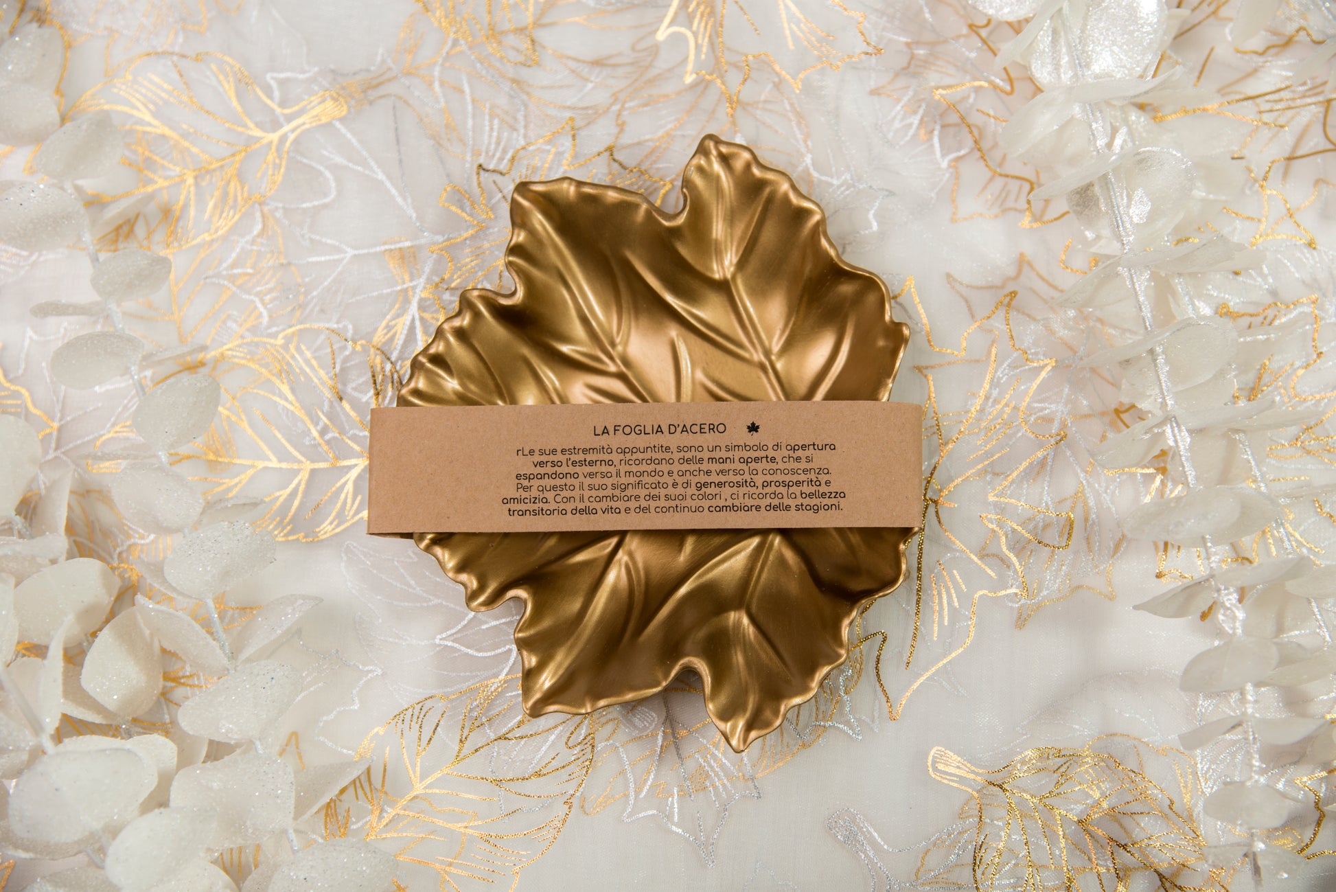 Vassoio in eco-resina, dall’effetto ceramica, composto da una polvere di resina acrilica ed acqua, con finitura metallizzata dipinta a mano.