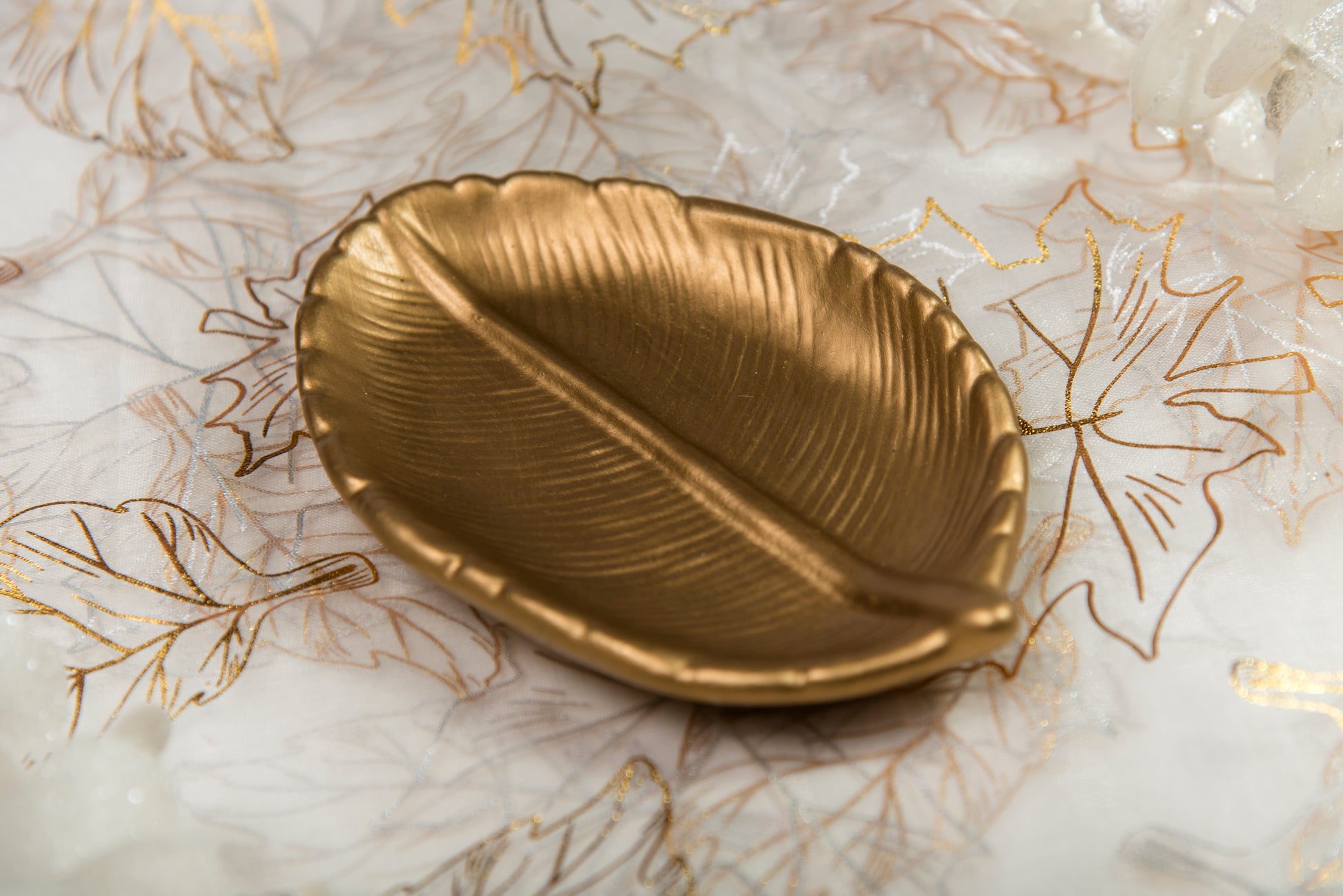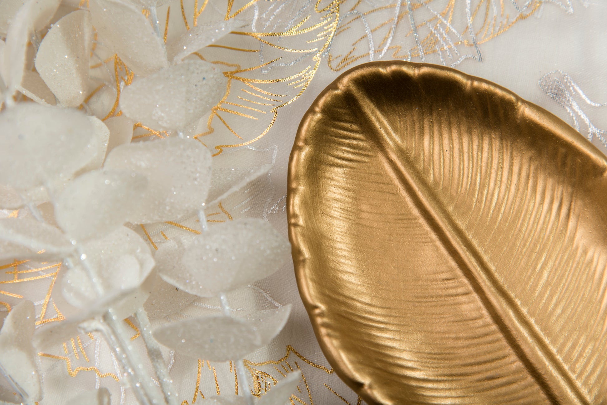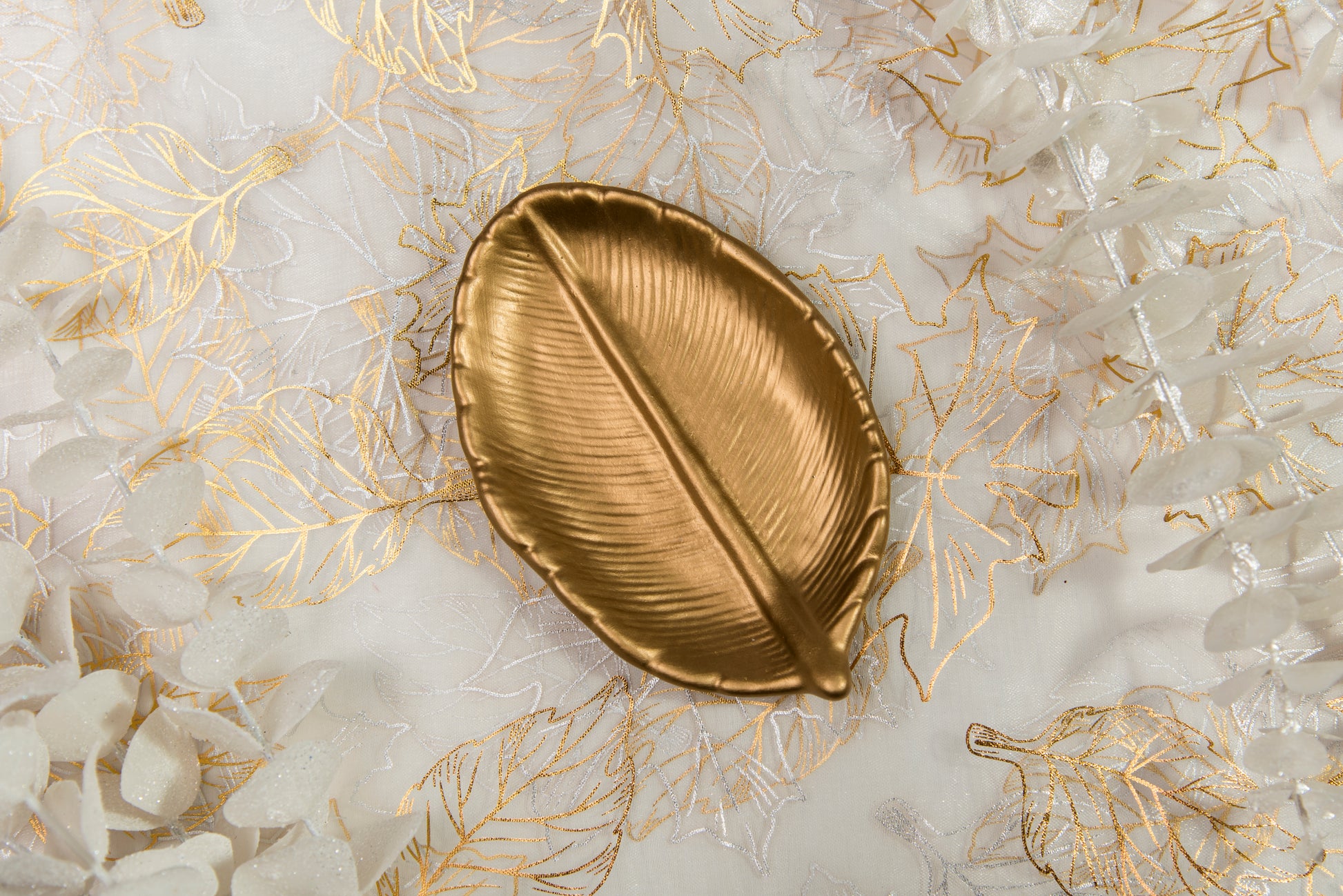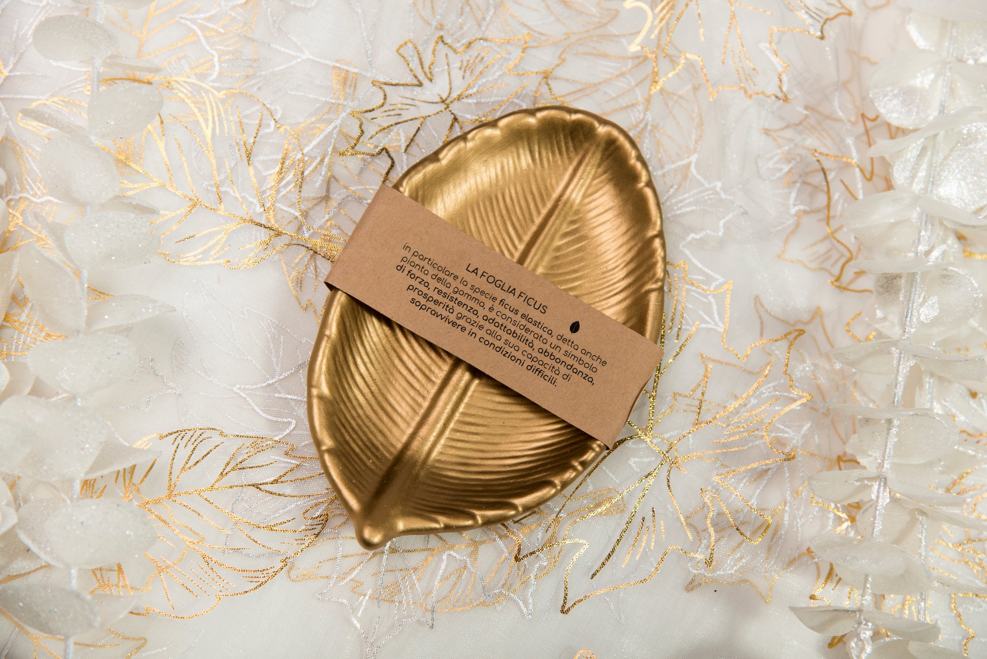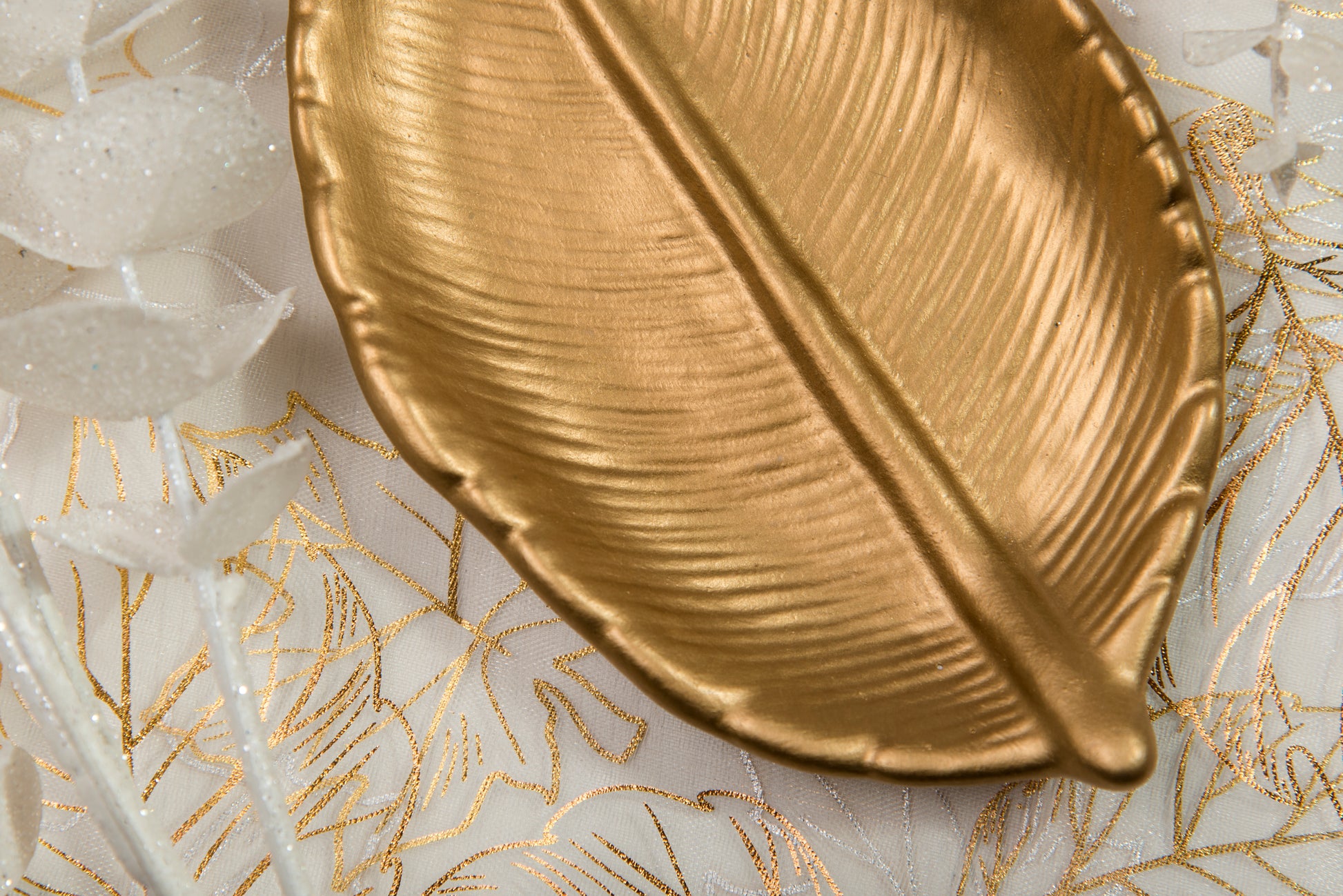 Vassoio in eco-resina, dall’effetto ceramica, composto da una polvere di resina acrilica ed acqua, con finitura metallizzata dipinta a mano.